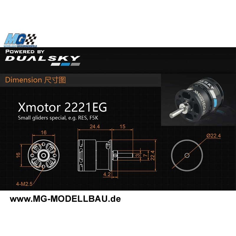 Die Motoren der Serie XM2221EG, XM2225EG und XM2230EG sind für die 200-400g F5K und ASFC P5B Klasse geeignet.