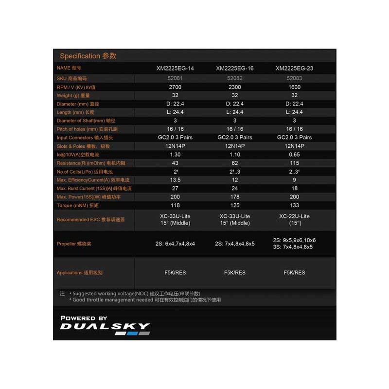 DUALSKY XMotor XM2225EG-16 K/V 2300 177,6W Brushless Motor für F5K/RES