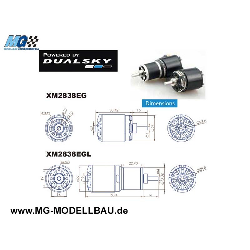 DUALSKY XMotor XM2838EG-9L GLIDER 1350 K/V LANGE AUSFÜHRUNG Brushless Motor 51695