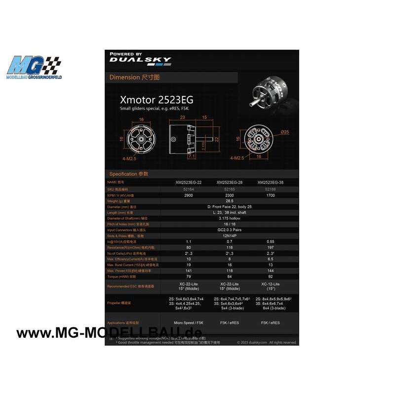 DUALSKY Xmotor XM2523EG-38 K/V 1700 Glider Brushless Motor