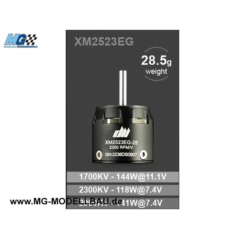 Serie "EG"/ "EGL" sind speziell für die Bedürfnisse des Elektrosegelflugs konzipiert. Die kleinsten Typen eigenen sich hervorragend die F5K, R.E.S, P5B u.ä. Anwendungen. Motoren mit langer Motorwelche für vorbildgetreue Segelflugmodelle sind ebenso erhältlich, wie Motoren im gekapselten Gehäuse für besonders schmale Rümpfe. "XM2833EGL" weist als Besonderheit eine Wellen-/Motorverlängerung in Form eines Getriebegehäuses auf. Dabei ist jedoch KEIN Getriebe integriert. Es dient lediglich dem vereinfachten Einbau in ultraschmalen Rümpfen.