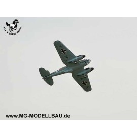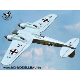 Originalgetreue Nachbildung des zweimotorigen Tiefdeckers der Ernst Heinkel Werke in Rostock. Die Maschine wurde in den 30er Jahren als schnelles Verkehrsflugzeug für die Lufthansa eingesetzt und konnte 10 Passagiere befördern. Im zweiten Weltkrieg wurde die HE 111 häufig als Bomber eingesetzt. Das Modell wurde für Elektroantrieb entwickelt, kann wahlweise aber auch mit zwei Verbrennungsmotoren ausgestattet werden.