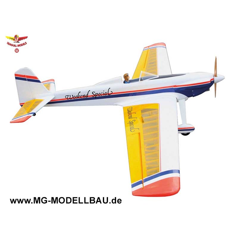 Heben Sie Ihre Flugkünste auf die nächste Stufe mit dem Super Weekend Special - einem wunderschön gebauten, großräumigen RC-Sportflugzeug, das für geschmeidiges Handling und aufregende Kunstflugleistungen entwickelt wurde. Mit seiner großen Flügelfläche und der leichten Balsa-Konstruktion bietet dieses Flugzeug ein fehlerverzeihendes, ruhiges Gefühl in der Luft, so dass es ein Vergnügen ist, mit wenig Gas zu fliegen, während es gleichzeitig bereit ist, auf Ihr Kommando in dynamische Manöver zu wechseln.