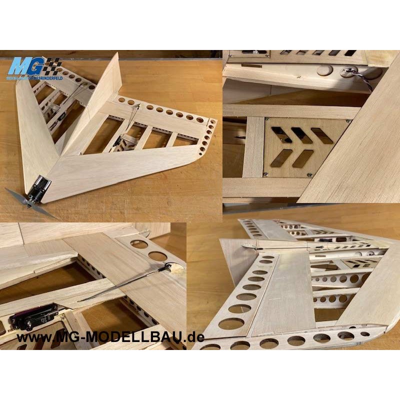 Der Bausatz enthält alle für den Zusammenbau erforderlichen Holzteile. Motor, Folie, Servo und Zubehör müssen separat erworben werden.