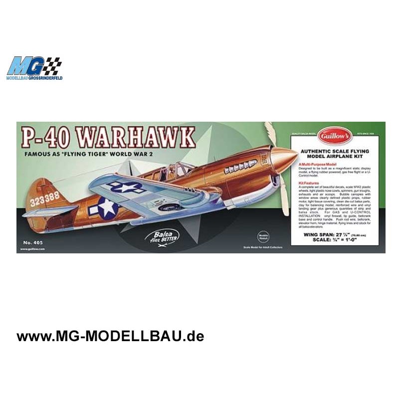 Guillow's P-40 Warhawk Balsabausatz Spannw. 71cm gu405