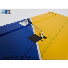 Konstruiert ist das fertig lackierte Flugmodell in einer festen EPO Hartschaum-Bauweise. Das Material ist äußerst robust und lässt sich bei leichten Beschädigungen schnell und einfach mit geeignetem Sekundenkleber reparieren.