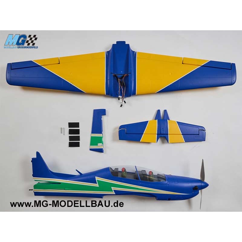 Die Tucano von DERBEE ist ein originalgetreues RC-Flugzeug mit 120cm Spannweite. Das Modell kommt als PNP-Version mit eingebauter Elektronik und fertig installiertem Einziehfahrwerk nahezu flugfertig aus der Box. Du benötigst lediglich einen passenden Akku und einen Empfänger um die Tucano in die Luft zu bringen.