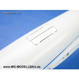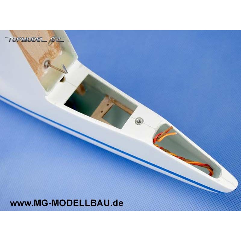 - FLÜGEL mit bereits montierten metallischen Bremsklappen und Querrudern. Flügelbefestigungsvorrichtung und Servoanschlüsse sind ebenfalls bereits installiert