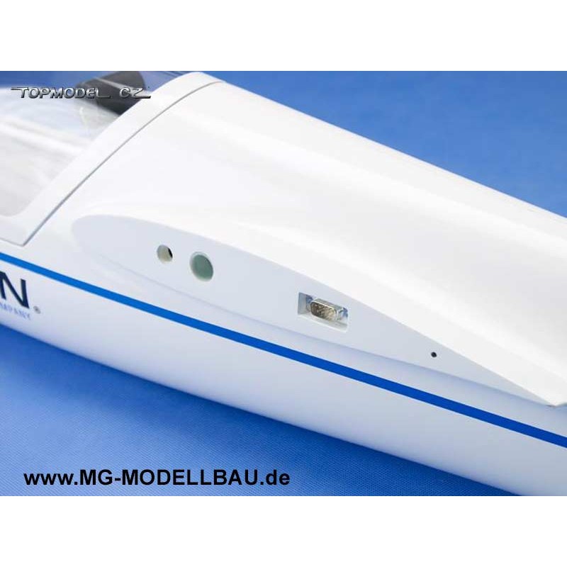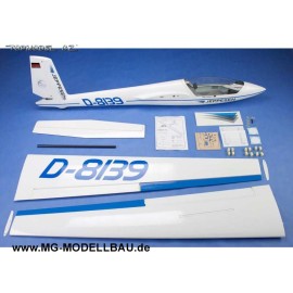 - Fertiger Rumpf aus Glasfaser mit bereits installierter Schiebekabine, Glasfasersitz, Armaturenbrett, Anschlüssen, Verkabelung für Querruderservos und Bremsklappen sowie Flügelverbindungskasten. Ruder und Bowdenzug sind ebenfalls montiert. Einziehbares Fahrwerk (mit montierten Lukentüren), Spornrad und Schlepphaken sind bereits installiert