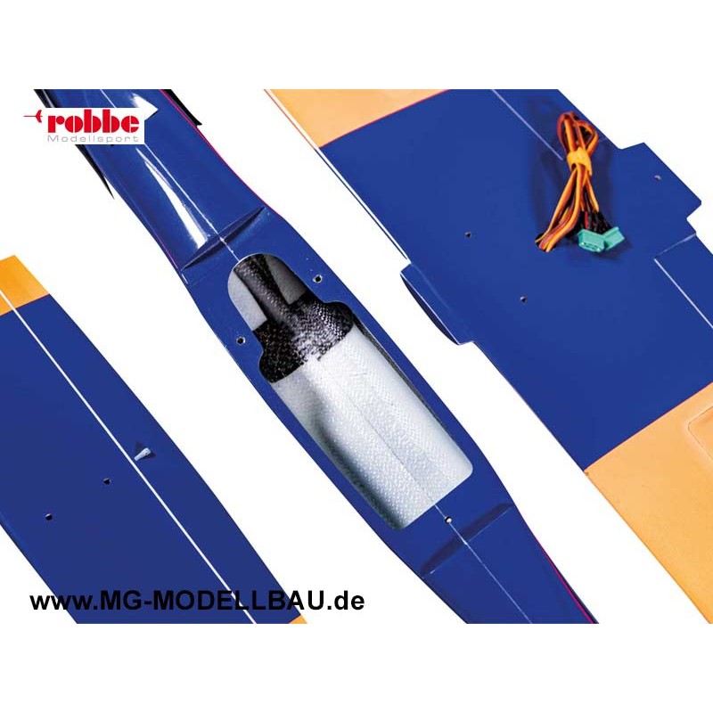 Der Rumpf ist unter dem Flügel extrem geräumig konzipiert, um auch größere Akkus für Hochleistungsantriebe gut unterzubringen. Quer- und längs einlaminierte CfK Verstärkungen sorgen für die hohe Festigkeit.