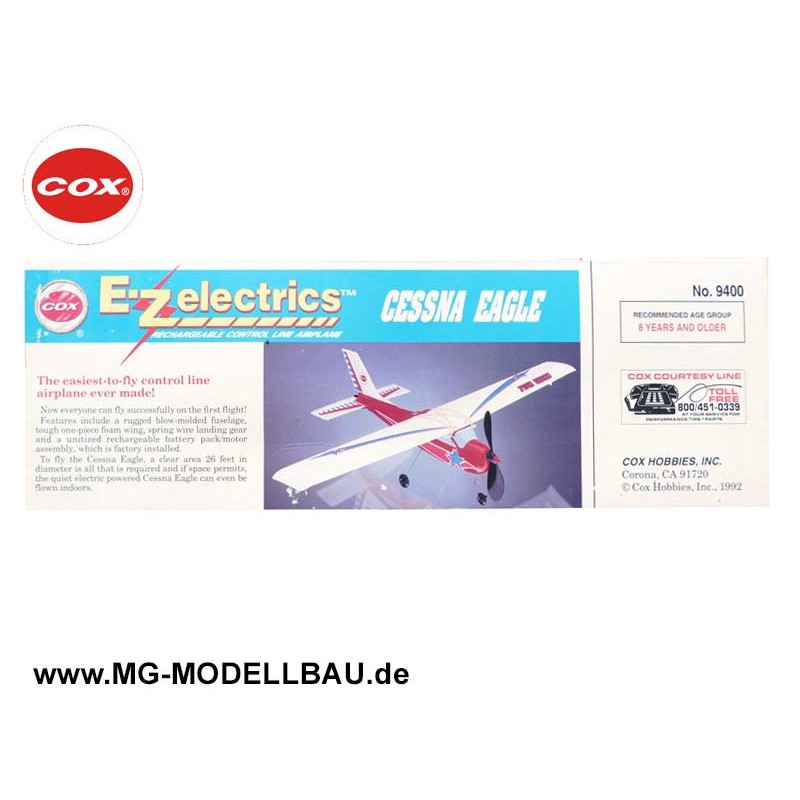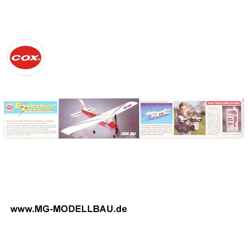 - Der Cox Cessna Eagle kann in weniger als 5 Minuten ohne Klebstoff oder Spezialwerkzeug zusammengebaut werden: