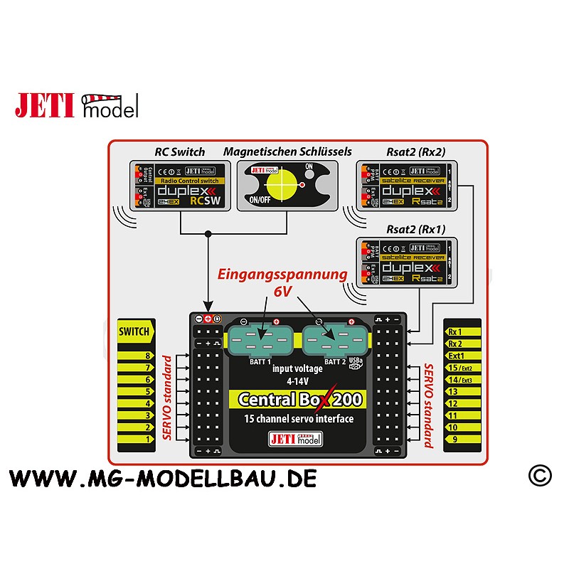 JETI Central Box CB200 + 2 RSat2 + RC Switch Jeti J-CB-200-RS- RCSW