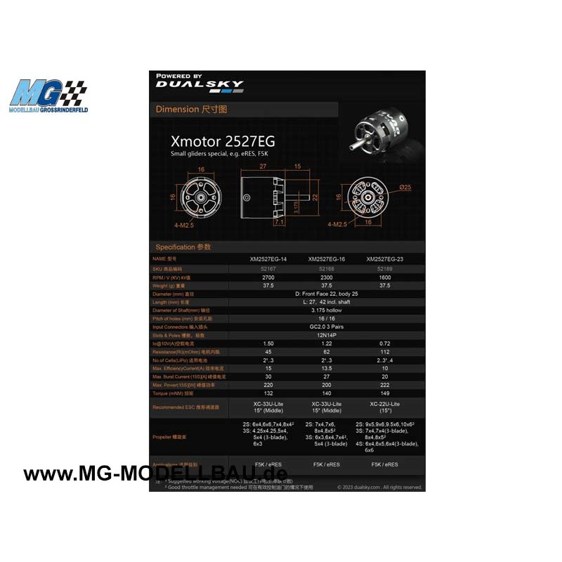 DUALSKY XMotor XM2527EG-23 K/V 1600 Brushless Motor