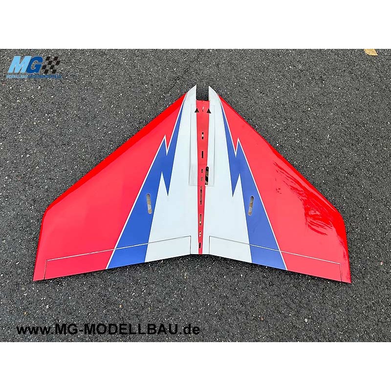 - Servos: 2 Stück Servos in Standardgröße mit Metallgetriebe (KST-CM653) für die Elevons und 1 Stück Miniservo mit Metallgetriebe für das Seitenruder (Hitec HS-5245, 7245 usw.)