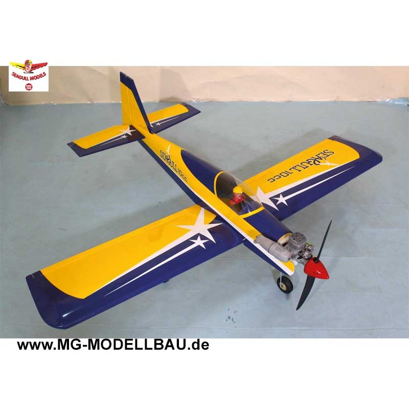 SEAGULL 40 LOW WING TRAINER wurde für den fortgeschrittenen Sportflieger entwickelt. Es ist ein Tiefdecker, der leicht zu fliegen und schnell zu montieren ist. Die Zelle ist in konventioneller Bauweise aus Balsaholz und Sperrholz gebaut, um es stärker als das durchschnittliche ARTF zu machen, aber die Konstruktion erlaubt es, das Flugzeug leicht zu halten. Sie werden feststellen, dass Ihnen die meiste Arbeit bereits abgenommen wurde. Das Fliegen der SEAGULL 40 ist einfach eine Freude. Das Modell kann mit einem modernen Brushless Antrieb und einem 4-5S Lipo Akku ausgestattet werden ebenso wie mit konventionellen Glühzündermotoren der Klasse 6,5-85ccm