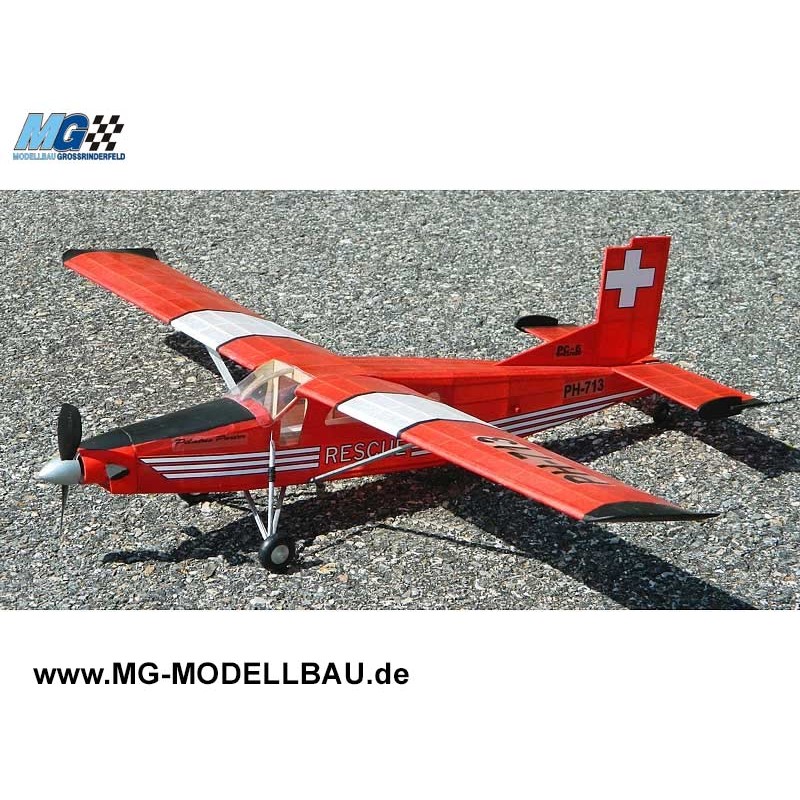 Die PC-6 Porter ist das weltweit führende STOL-Flugzeug (Short Take-Off and Landing) und damit äußerst vielseitig bei allen Wetter- und Geländebedingungen einsetzbar. Es wird für viele verschiedene Aufgaben wie bei Suche und Rettung von Menschenleben, Materialtransport und Fallschirmausflüge eingesetzt - ein wirklich robustes Nutzfahrzeug. Die Guillow-Kreation ist eine originalgetreue Nachbildung des echten Flugzeugs. Im Vordergrund sehen einfache Montage und Flugstabilität. Ein großartiger Bausatz, bei dem geringes Gewicht, einfache Montage und Flugstabilität bei der Konstruktion berücksichtigt wurden.