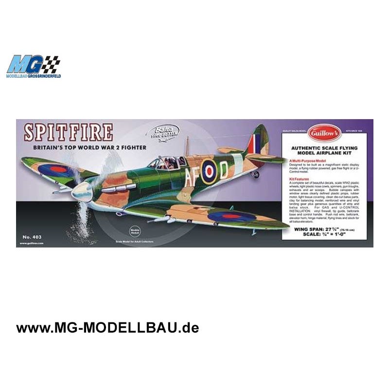 Guillow's Supermarine Spitfire Lasercut Bausatz Spannw. 70cm gu403