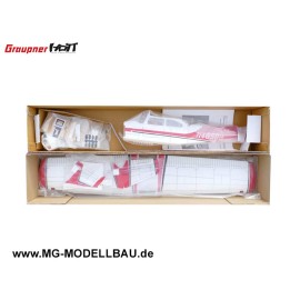Das aus Leichtschaumstoff hergestellte Modell ist in wenigen Stunden flugbereit. Tragfläche und Radverkleidungen sind bereits fertig verklebt. Der Rumpf ist für eine schnelle Montage der Antriebs- und RC-Komponenten vorbereitet.