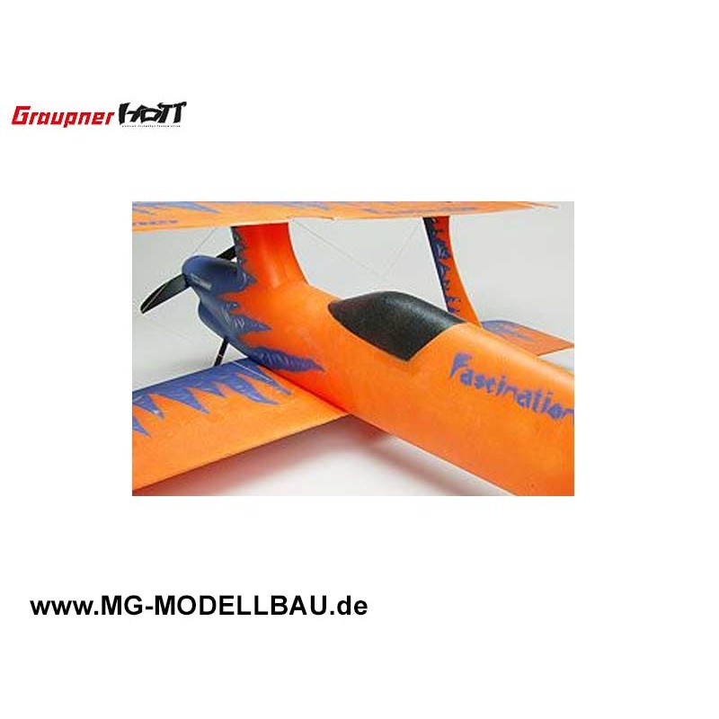 Der Graupner Fascination ist ein voll kunstflugtaugliches Sport-Doppeldeckermodell mit sehr guten Langsamflugeigenschaften. Dank der Steuerung über alle Achsen ist der Fascination sowohl für Park-Fly-Betrieb als auch für den Einsatz im Indoor-Bereich geeignet.