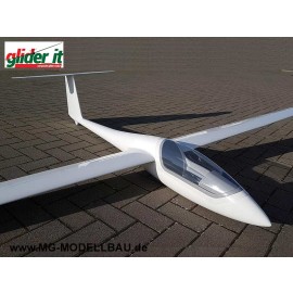 The model is manufactured by Jiri Tuma. Jiri created a special technology to make wings stiff and light enough for this thin airfoil. Also special is the space between fuselage and wing and V-tail as shown on the pictures . This will help to reduce interferences and drag. The model is built in double-carbon with carbon V-tail. Fuselage same as EXTASY in carbon and nose- cone 2,4 Ghz ready (Kevlar-Glas). There are 5-ballast tubes (3 in the joiner and 2 in the wing) which allows 1800g only with use of brass! No expensive wolfram needed ! Gunther flew this model 3 weeks after maidenflight on the last contest of the season on the Oktoberfestpokal" in munich and won the senior award.