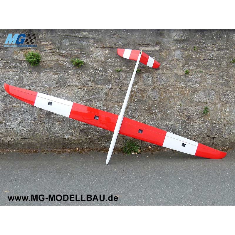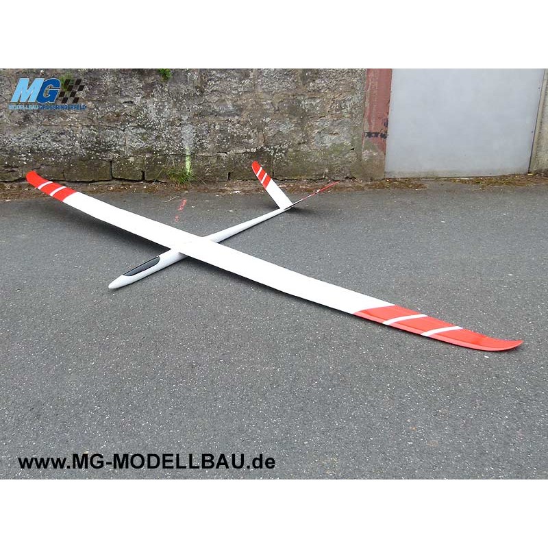 Allroundsegler mit Wölpklappen. in D-Box Ausführung mit Biaxial GFK. Er geht bei schwacher Thermik, läuft aufgebleit auch bei stärkerem Wind und ist trotz der Spannweite sehr wendig und agil. Dank der einbauter Motor ist es egal ob in der Ebene oder im Gebirge geflogen wird.