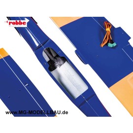 Der Rumpf ist unter dem Flügel extrem geräumig konzipiert, um auch größere Akkus für Hochleistungsantriebe gut unterzubringen. Quer- und längs einlaminierte CfK Verstärkungen sorgen für die hohe Festigkeit.