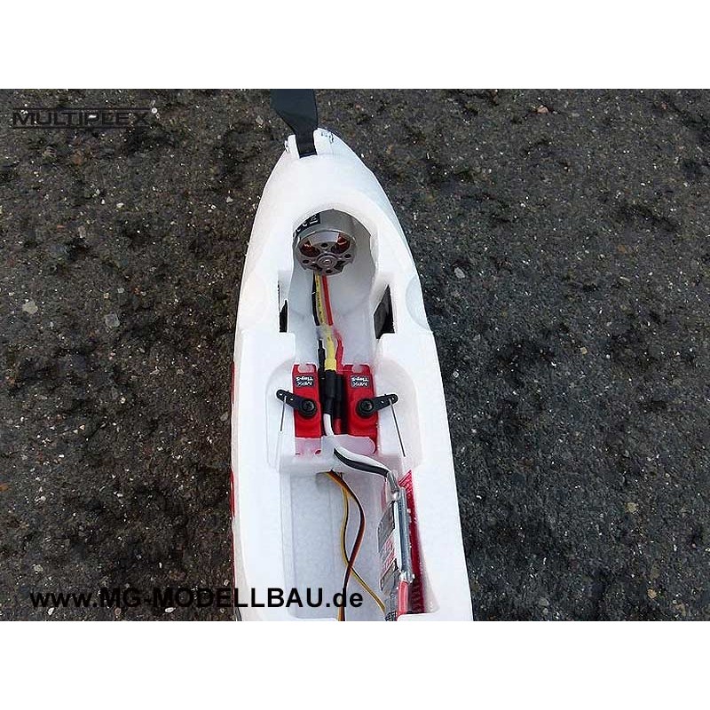 - Kräftiger, effizienter Brushless-Antrieb mit S-BEC-Regler, für zügige Steigflüge und lange Flugzeiten