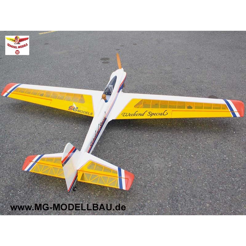 Heben Sie Ihre Flugkünste auf die nächste Stufe mit dem Super Weekend Special - einem wunderschön gebauten, großräumigen RC-Sportflugzeug, das für geschmeidiges Handling und aufregende Kunstflugleistungen entwickelt wurde. Mit seiner großen Flügelfläche und der leichten Balsa-Konstruktion bietet dieses Flugzeug ein fehlerverzeihendes, ruhiges Gefühl in der Luft, so dass es ein Vergnügen ist, mit wenig Gas zu fliegen, während es gleichzeitig bereit ist, auf Ihr Kommando in dynamische Manöver zu wechseln.